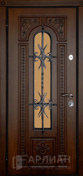 Металлическая дверь в частный дом со стеклом и решеткой №36