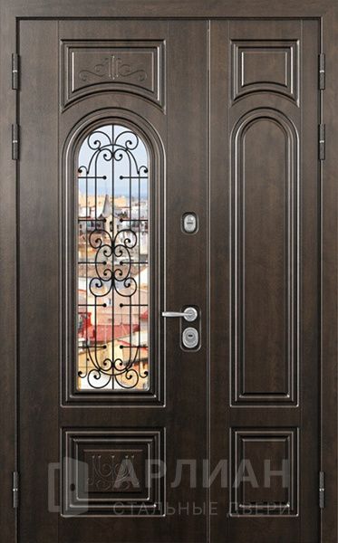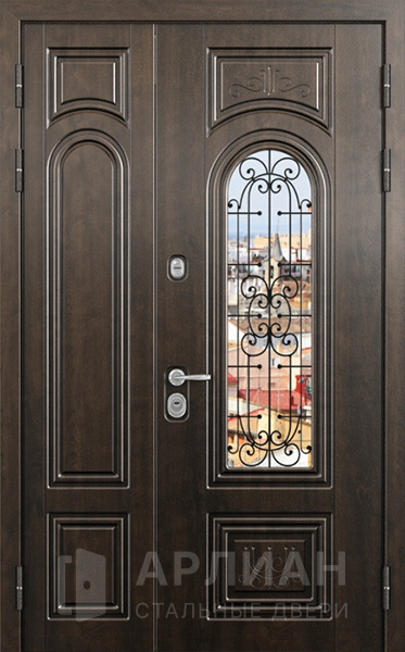 Двустворчатая металлическая дверь со стеклопакетом в коттедж  №17