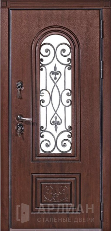 Металлическая дверь в частный дом со стеклом и решеткой №36