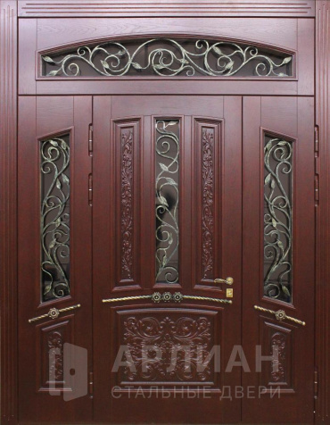 Трехстворчатая парадная входная дверь с терморазрывом и ковкой №34